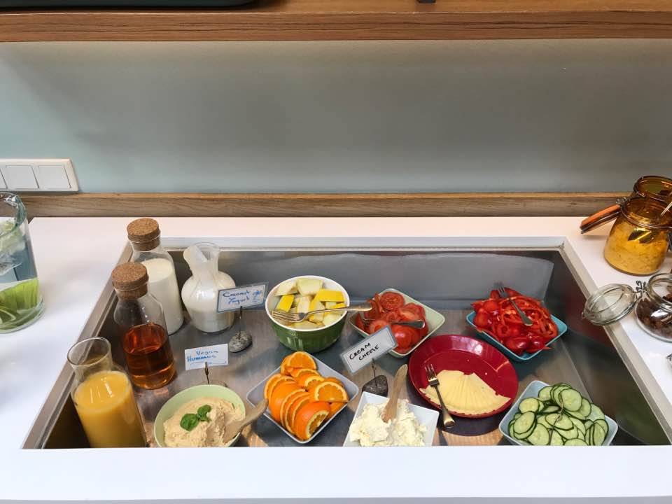 Ah! E se curte um bom café da manhã, aqui tem desde frutas até waffel e bons queijos. Adorei e já quero voltar!