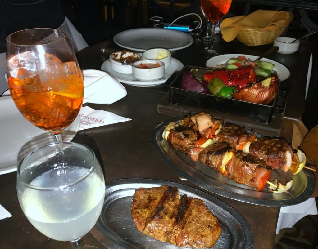 O mais caro foi o brochette de lomo (100 reais) e os drinks e empanadas custaram 25 e 10 reais respectivamente.