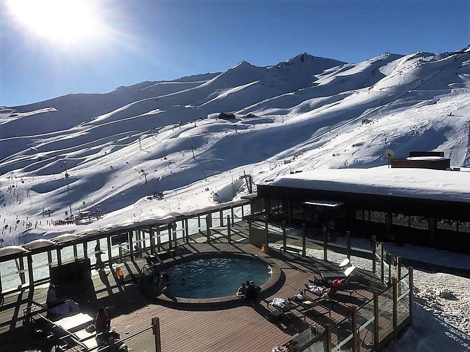 Dentro do Valle Nevado você pode sim passar o dia fazendo esqui ou snowboard. Sobretudo, pode também aproveitar muitas outras coisas. Tem as festinhas pós esqui que rola todos os dias (das 17 às 18 horas), assim como dá pra curtir a piscina com vista para as montanhas.
