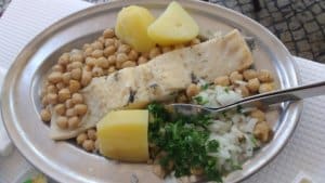Tradicional português situado no bairro do Rossio. Possui uma excelente localização, estando bem no centro do turismo de Lisboa. Além do excelente atendimento, o local é bastante conhecido pelos pratos à base de bacalhau. Em especial o bacalhau na brasa e também o bacalhau com grão que foi o prato escolhido.
