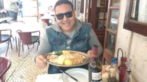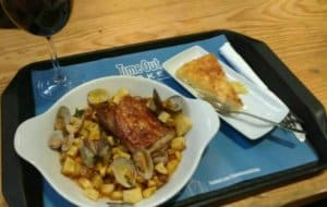 A porção é bastante generosa e serve bem duas pessoas. Come-se muito bem e gasta-se pouco. Para harmonizar, pedi o tradicional rótulo português Esteva Douro, por apenas 12 euros a garrafa. Essa é uma das grandes vantagens de Portugal.