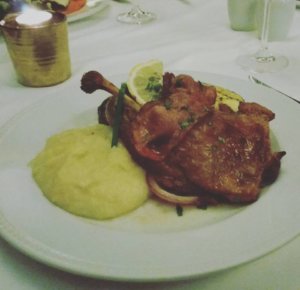 No cardápio, tradicionais pratos portugueses são servidos no menu à la carte, bem como outros clássicos. Como o Confit de Pato crocante com legumes grelhados e purê de batatas, que foi a minha escolha para o jantar. Para harmonizar, um refrescante vinho verde rosé da vinícola Casal Garcia.
