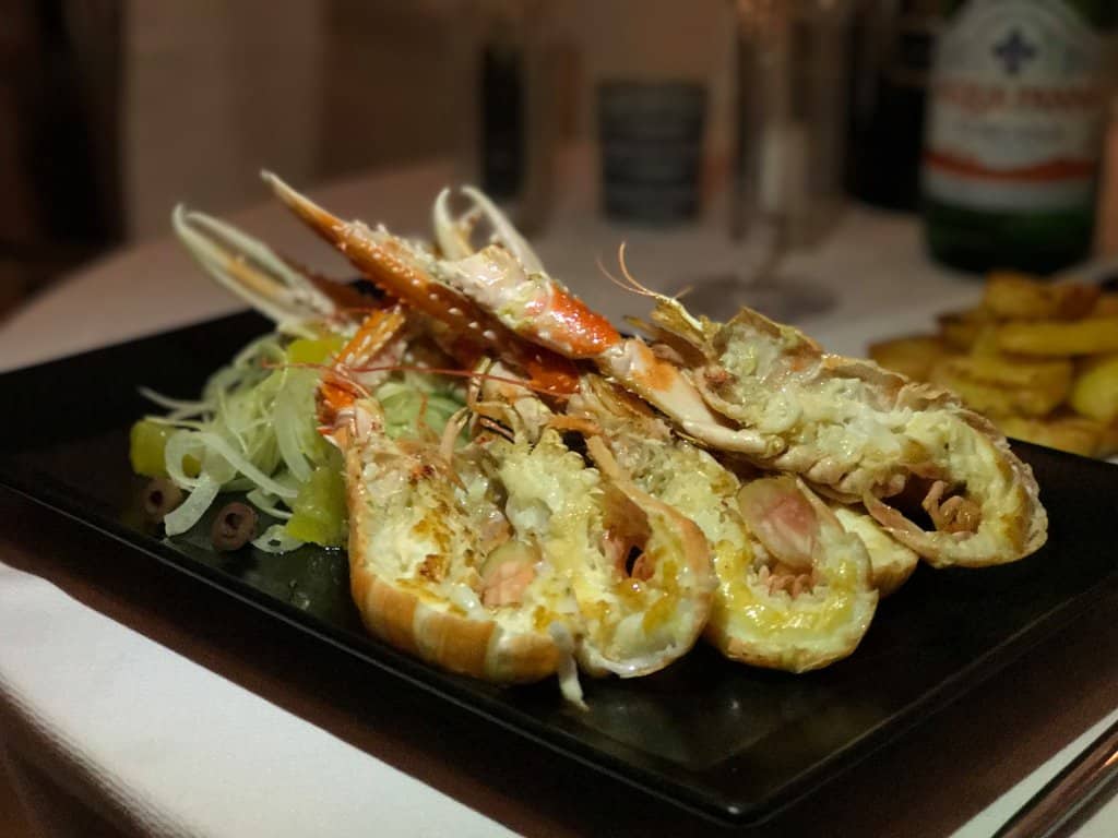 Primeiro Prato: fetuccini com tomate cereja e mozarela e depois lagostas com azeitona de segundo prato. Este restaurante é bem famoso pelas lagostas.