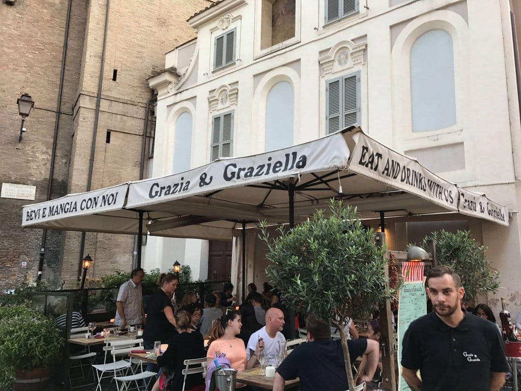 Durante 20 dias em Roma tive a chance de conhecer dezenas de restaurantes: bons, ruins, caros, baratos e, confesso que o que mais me agradou foi um restaurante em Trastevere chamado Grazia e Graziella. O restaurante fica no coração do bairro bohemio de Trastevere e o atendimento e comida são fantásticos. Todos os garçons bem humorados e tratando todos com um sorriso no rosto.
