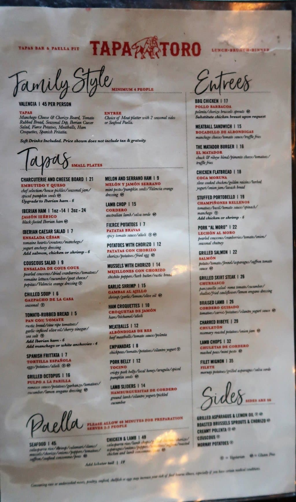 O restaurante Tapa Toro é um dos poucos que não é de rede (franquia) pela região. Calma! Não que eu não goste de franquias, mas acho legal ver opções diferenciadas em Orlando. Aqui tem tapas, comidas espanholas e uma sangria DELÍCIA!