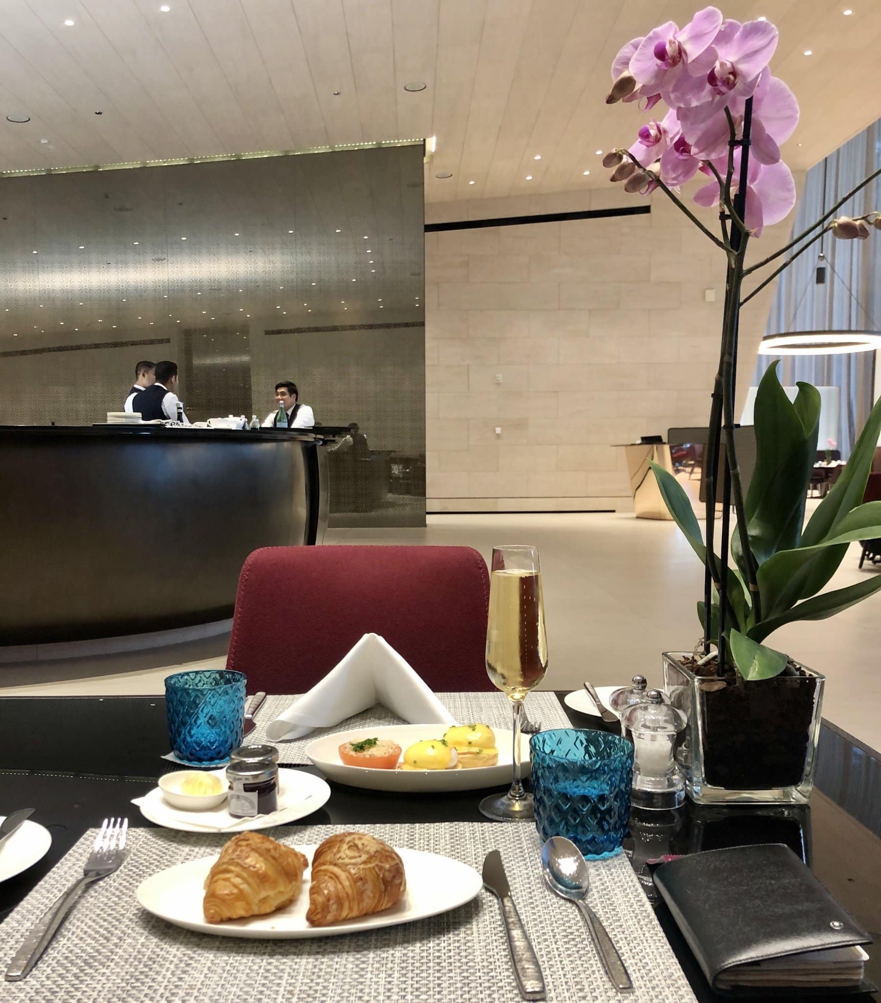 (Café da manhã à la carte no lounge Al Safwa da primeira classe da Qatar em Doha)