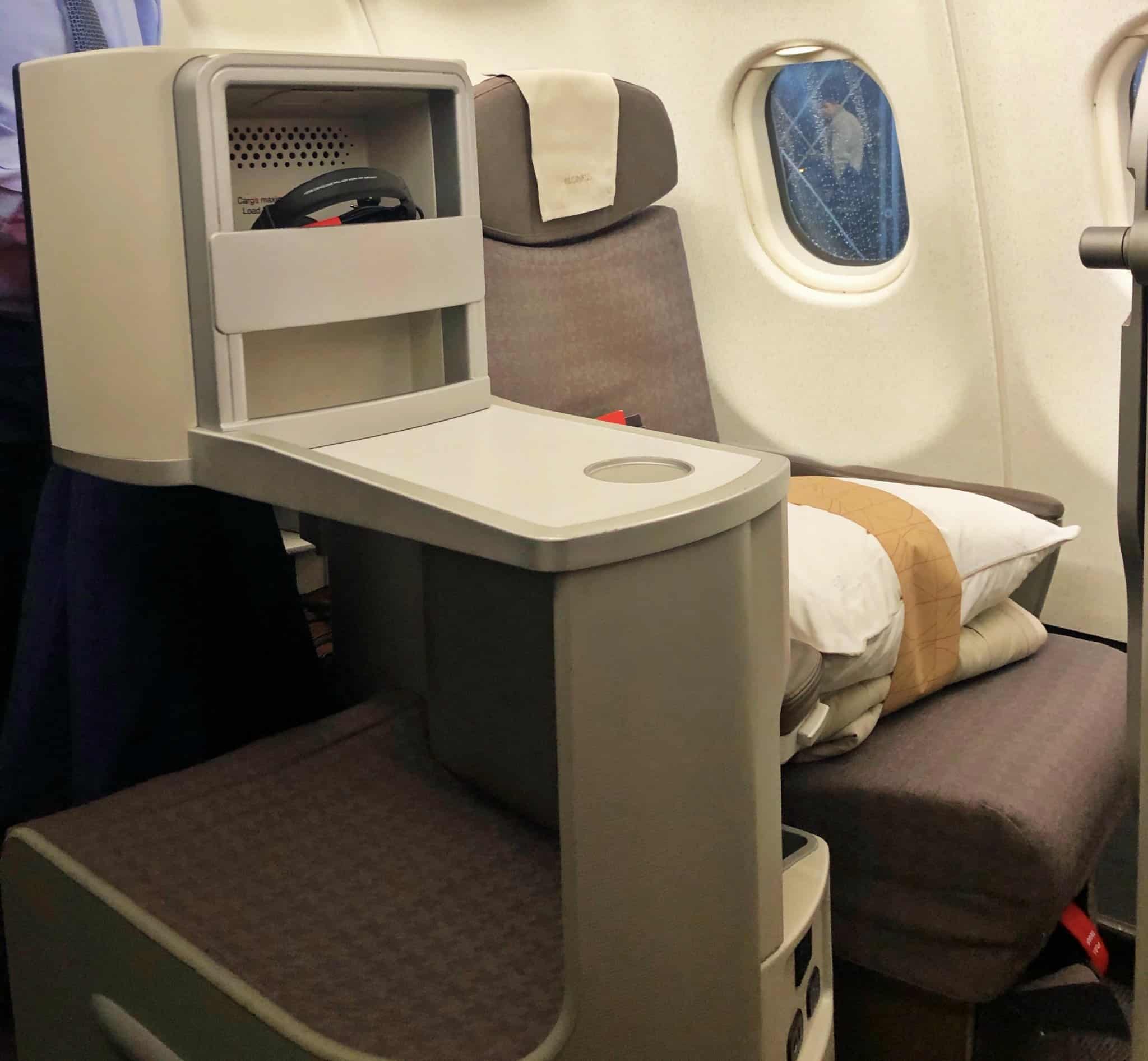 (Assento da classe executiva da espanhola Ibéria – essa mesma configuração é utilizada nos voos da companhia de/para o Brasil)