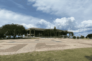 Bem, primeiramente, você sabe o que é o Centro Geodésico do Brasil? Explico: é literalmente o centro do país… Está localizado no hall de entrada do Palácio Araguaia e é marcado pela Rosa dos Ventos. É o ponto central entre os extremos do nosso país (Norte-Sul, Leste-Oeste). Entretanto, para dar maior destaque ao monumento, foi criada uma Roda dos Ventos em tamanho maior, do lado de fora do palácio. O Centro Geodésico para visitação é desenhado em pedras portuguesas e fica na ala norte da praça.