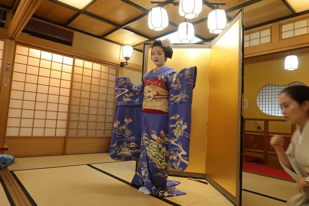Demais né? Para finalizar meu segundo dia em Quioto, decidi jantar com uma GUEIXA! Sim!! Isso mesmo! Na verdade, o jantar é com uma Maiko (aprendiz de Gueixa) e o restaurante chama-se Enchanted Time With Maiko. “Estevam, mas isso é barato?” Não! Não foi barato, mas quando você está no Japão, do outro lado do mundo, é necessário, sim, fazer algumas coisas como jantar com uma Gueixa e vestir um quimono, não é mesmo?