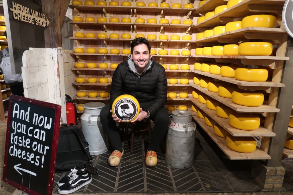 Entrei em uma loja de queijo holandês e comi um monte! Participei de uma degustação que acontecia no meio da rua e até ganhei novos amigos quando pedi para tirarem uma foto minha! Foram 3 dias incríveis!