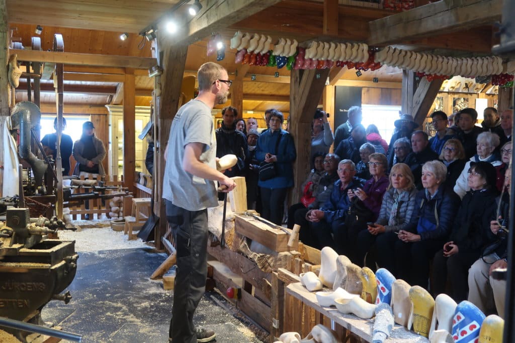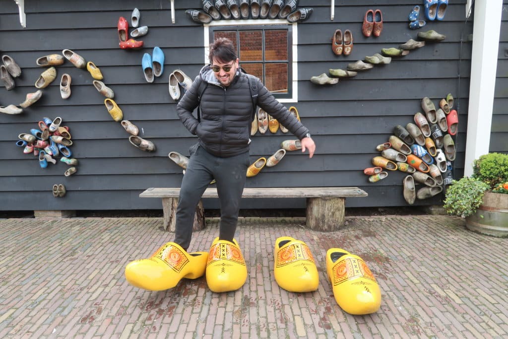 Eu iniciei a visita conhecendo o primeiro supermercado feito na Holanda, depois entrei nos moinhos de vento, aprendi a fazer um tamanco holandês e encerrei degustando vários tipos de queijo.