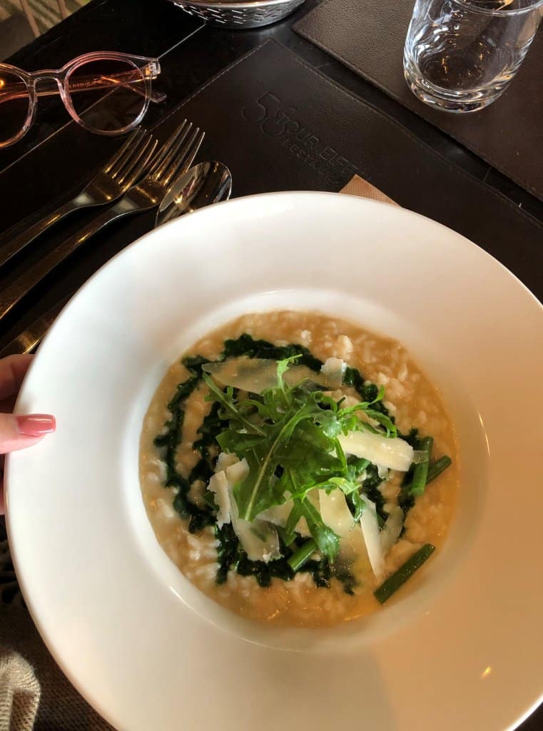 No almoço, por exemplo, o restaurante serve uma massa tagliatelle, que é um macarrão italiano com molho e ervas, risoto cremoso, entre outros pratos.