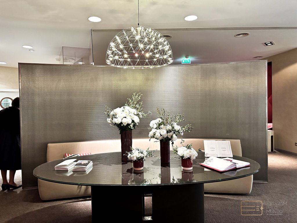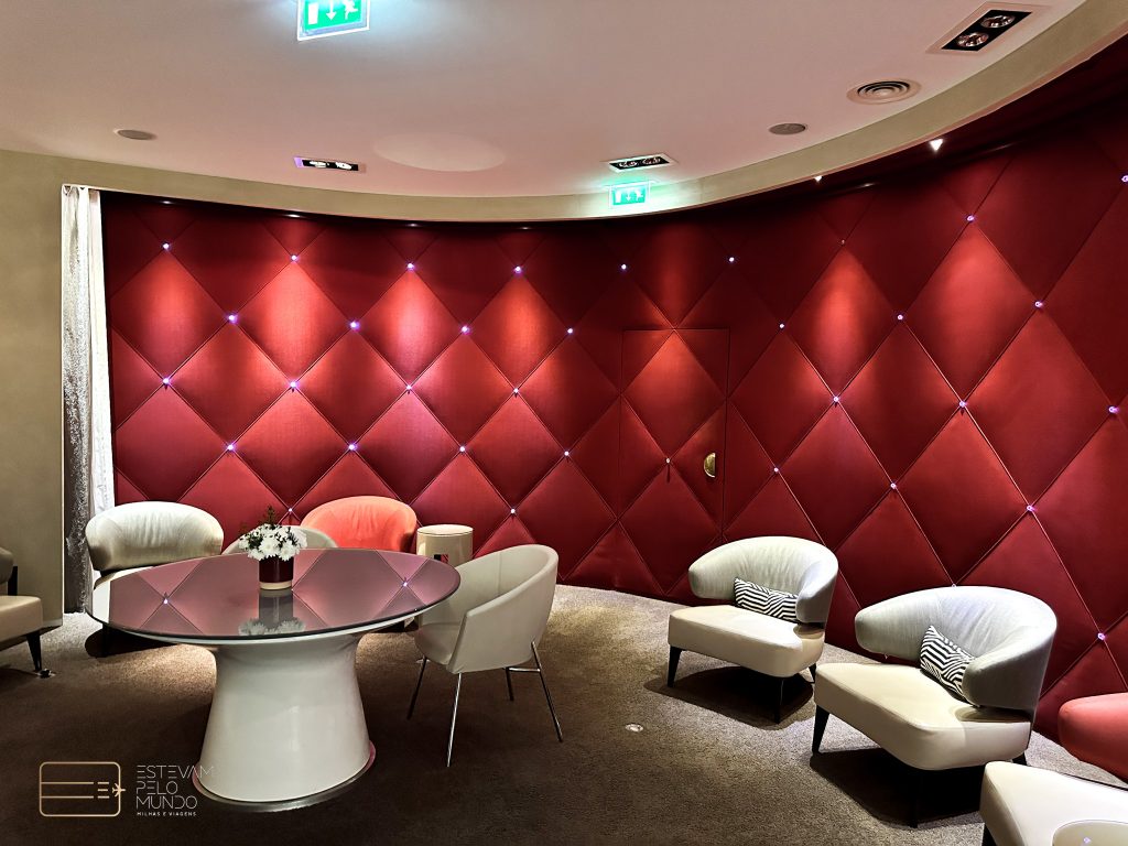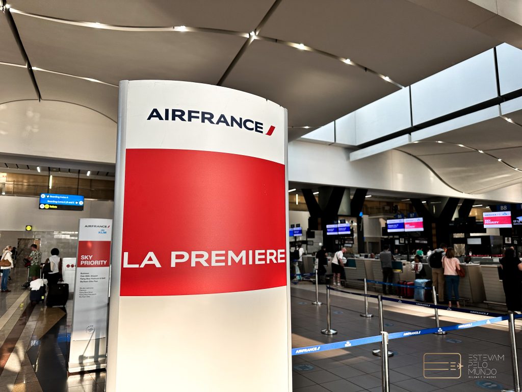 Chegando no check-in tem uma área exclusiva para os passageiros da La Première com tapete vermelho e tudo. Depois, uma pessoa nos acompanha por todo processo de imigração e segurança, até chegar à Sala Vip. Não durou nem um minuto todo esse processo porque tivemos prioridade no atendimento em tudo.