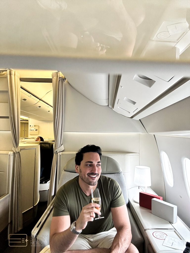 Na hora do embarque, mais uma vez sou acompanhado por um funcionário da companhia até dentro da aeronave, cortando a frente de todo mundo. Ele me levou até o meu assento dentro da aeronave. É prioridade da prioridade.