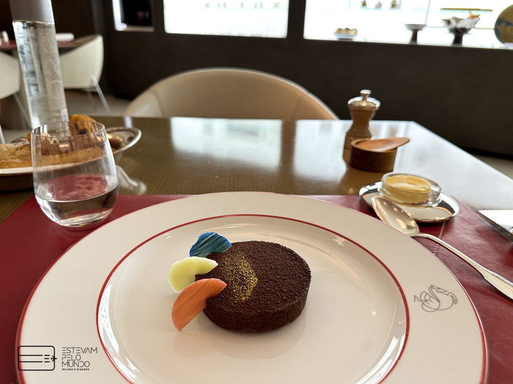 Antes do voo, acessei o lounge Slow e para os passageiros da La Première tem uma Sala Vip dentro desta Sala Vip. É tudo muito maravilhoso, os dois ambientes. Mas no espaço mais exclusivo tem um menu exclusivo à la carte que eu adorei. Tem entrada, prato principal e vinhos sul-africanos deliciosos.