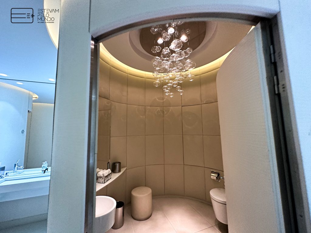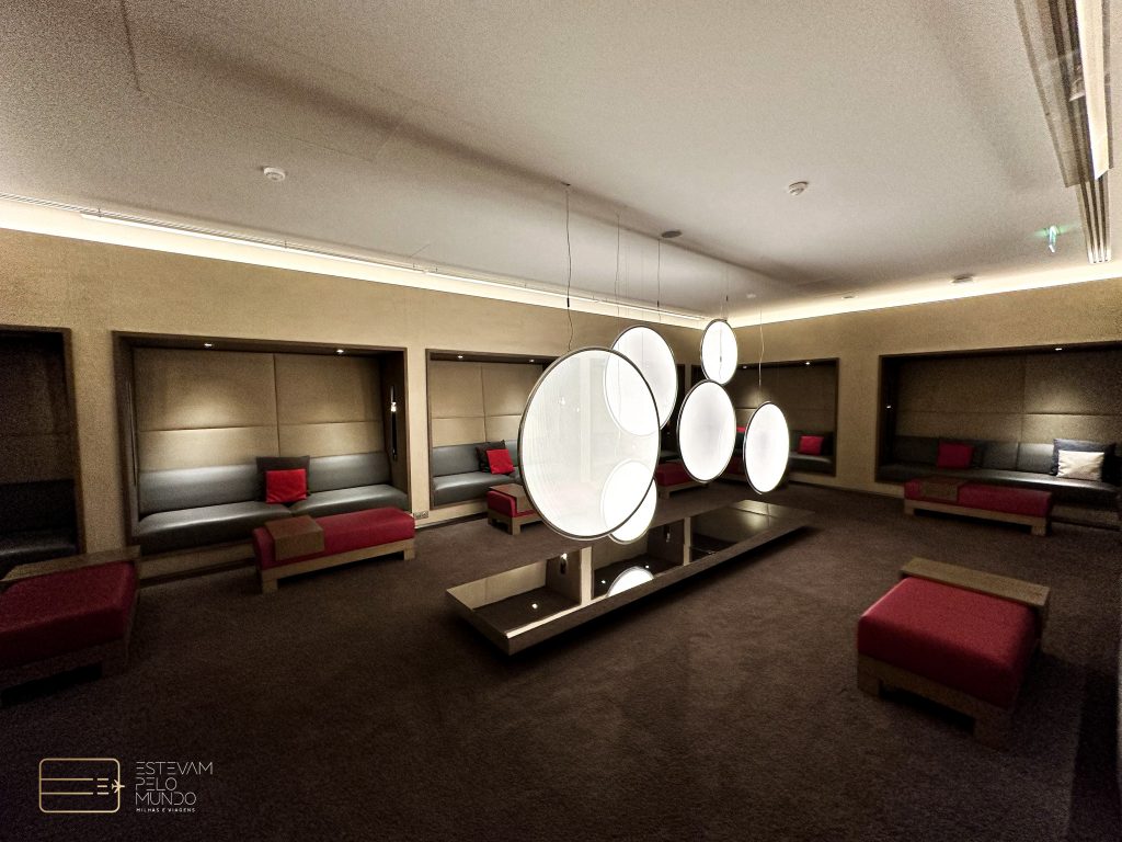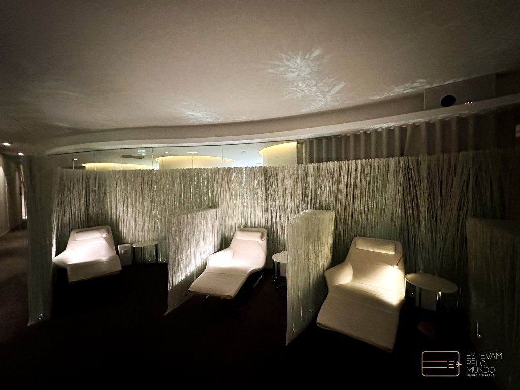 O lugar é maravilhoso, lindo e elegante. Puro luxo. Tem espaços privativos para dormir, o banheiro é um deslumbre, tem lugar para tomar banho com amenities da Sisley, spa (lembrando que tem 30 minutos para uso inclusos já na passagem), 12 tipos de água, e muito mais coisas.