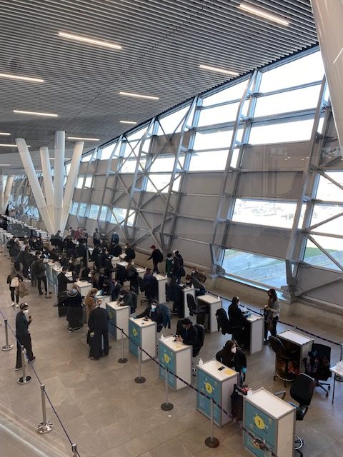 Chegada no aeroporto – nesse momento você passará por um balcão de atendimento para apresentar o seu Certificado Digital de Ingreso a Chile (C19). É nessa oportunidade que o viajante pode ser selecionado (de forma aleatória) para fazer um teste PCR. Não fui escolhida para fazer o teste, mas presenciei gente sendo selecionada, então, não pense que essa possibilidade fica só no papel.