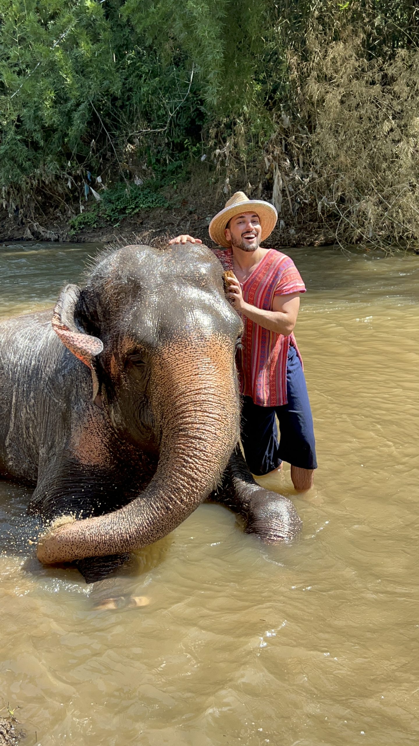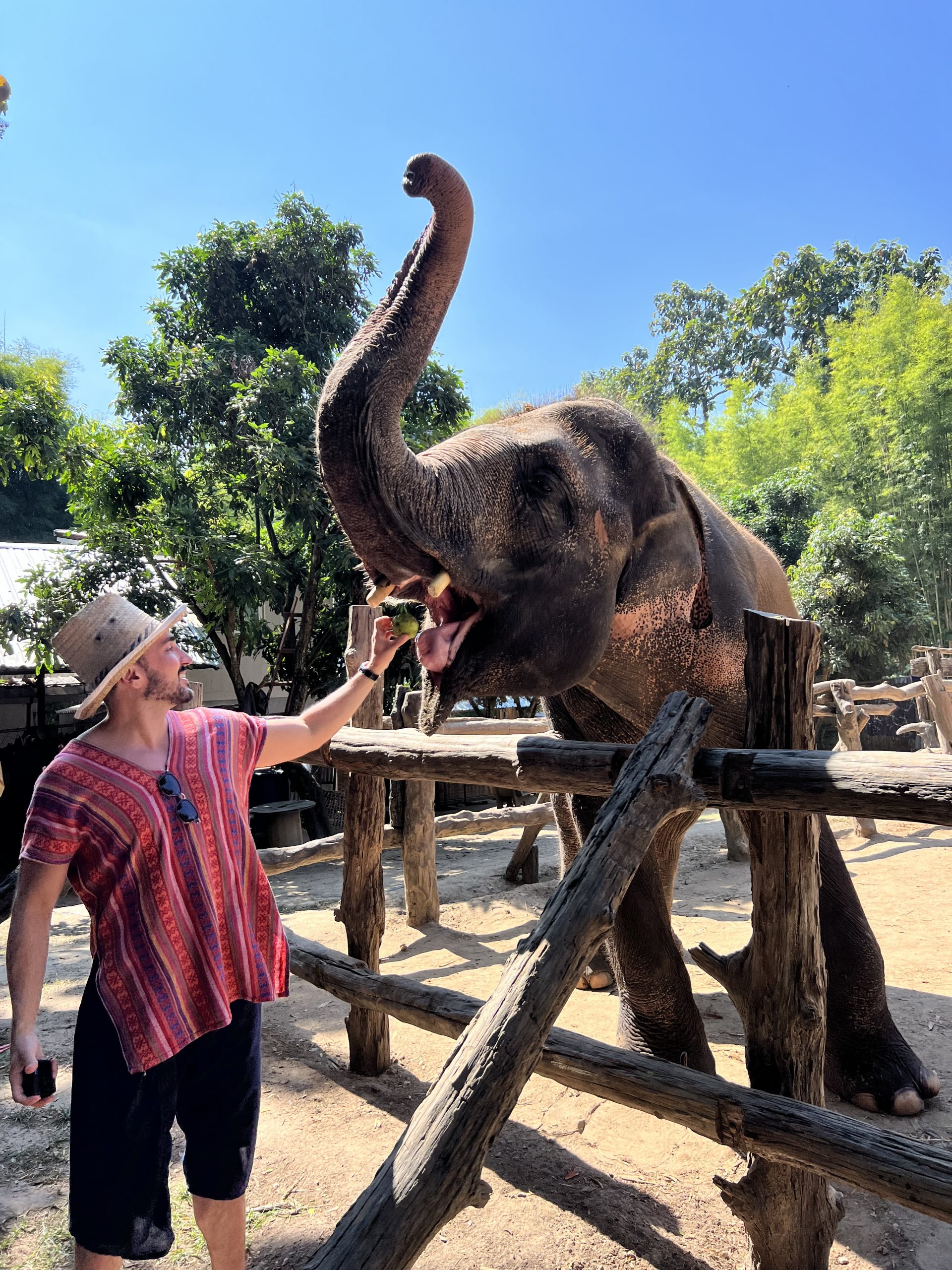 Agora, é a vez de conhecer o que tem para fazer em Chiang Mai. Minha primeira aventura foi visitar um santuário de elefantes Mae Rim Elephant Home, onde alimentamos e demos banhos nesses belos animais.