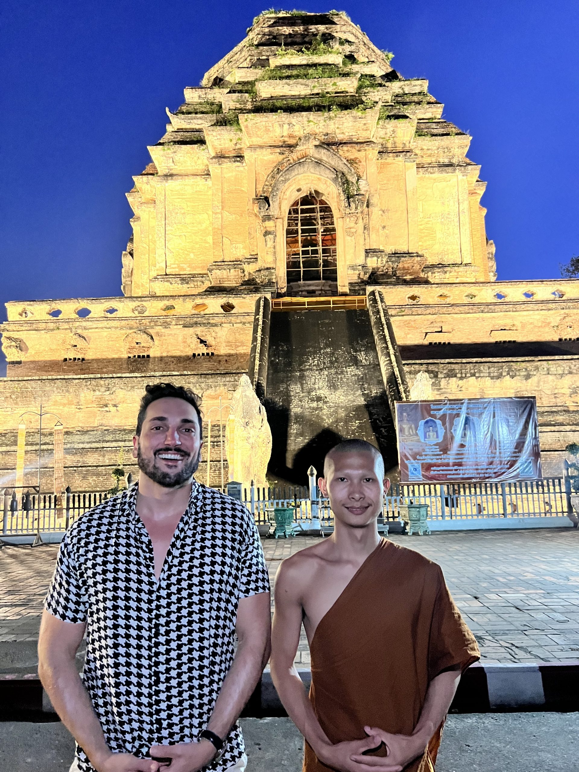 O Wat Chedi Luang é outro templo lindo, um dos mais emblemáticos da cidade. Mas também tem o outro lado, as mulheres não podem entrar dentro desse templo (somente no seu entorno) por serem consideradas impuras. Não sou eu que estou dizendo, que fique bem claro. Só os homens podem entrar, uma pena porque é lindo e cheio de detalhes. Loucura isso em pleno século 21.