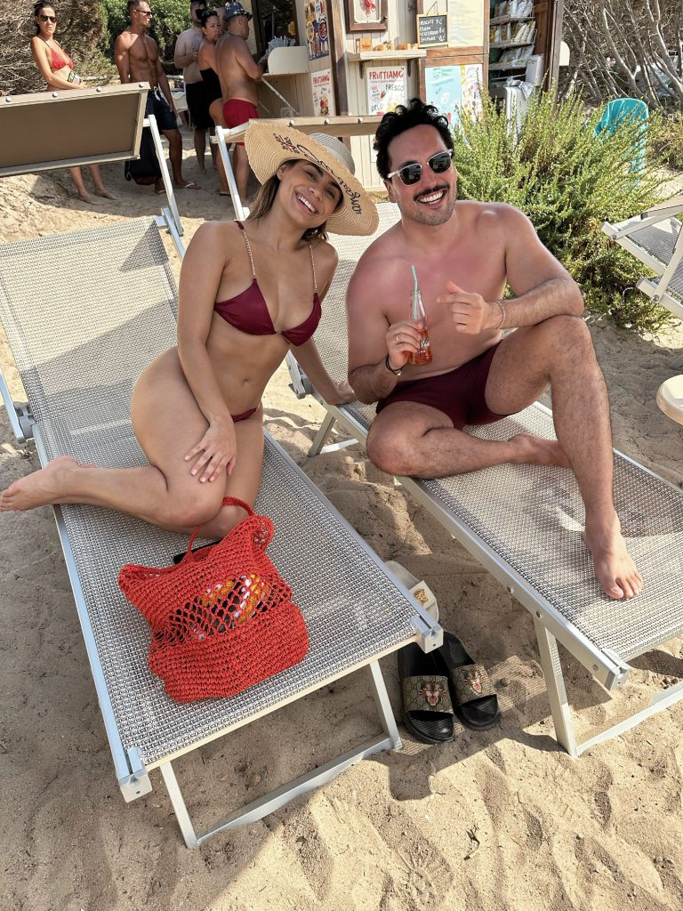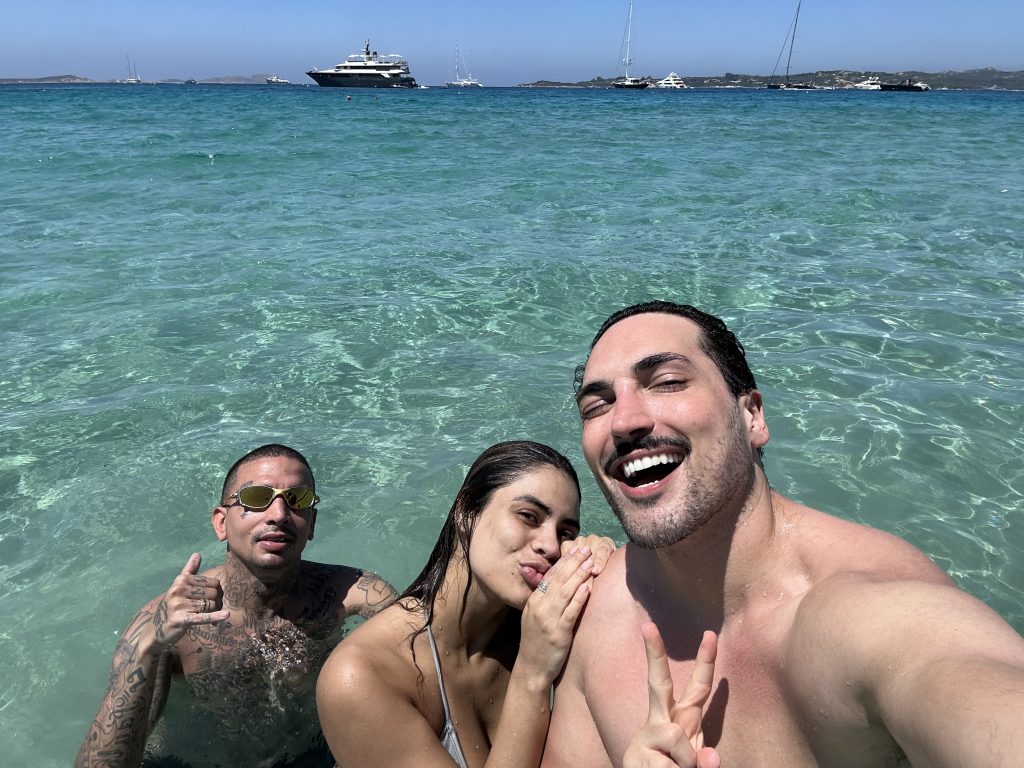 Depois, seguimos para a praia Spiaggia Liscia Ruja, outro lugar lindo que é acessado por uma trilha. O mar é bem azulzinho e na orla tem um monte de beach clubs.