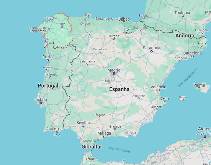 A Galícia, também chamada de Galiza, é uma região autônoma da Espanha. Ela fica a nordeste do país, bem em cima de Portugal. Inclusive, se você conhece as cidades portuguesas do extremo norte do país, vai notar muitas semelhanças com as cidades galegas.