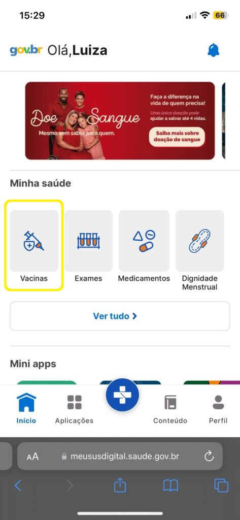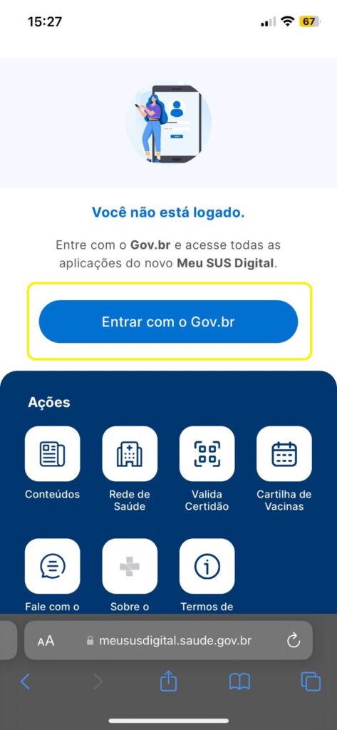 Se você tomou a vacina de febre amarela depois de 30/12/2022, acesse o site ou aplicativo do Meu SUS Digital. Voce vai realizar o login com seus dados do gov.br e abrir a aba de “vacinas” dentro do menu da plataforma.