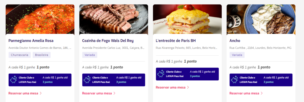 Além disso, dentro do Latam Pass, você encontra parcerias com programas de reserva de hotéis, aluguel de carros, pacotes, ingressos. Ao fazer as reserva usando os links associados oferecidos pela Latam, você ganha pontos por Real gasto nos investimentos para visitar destinos.