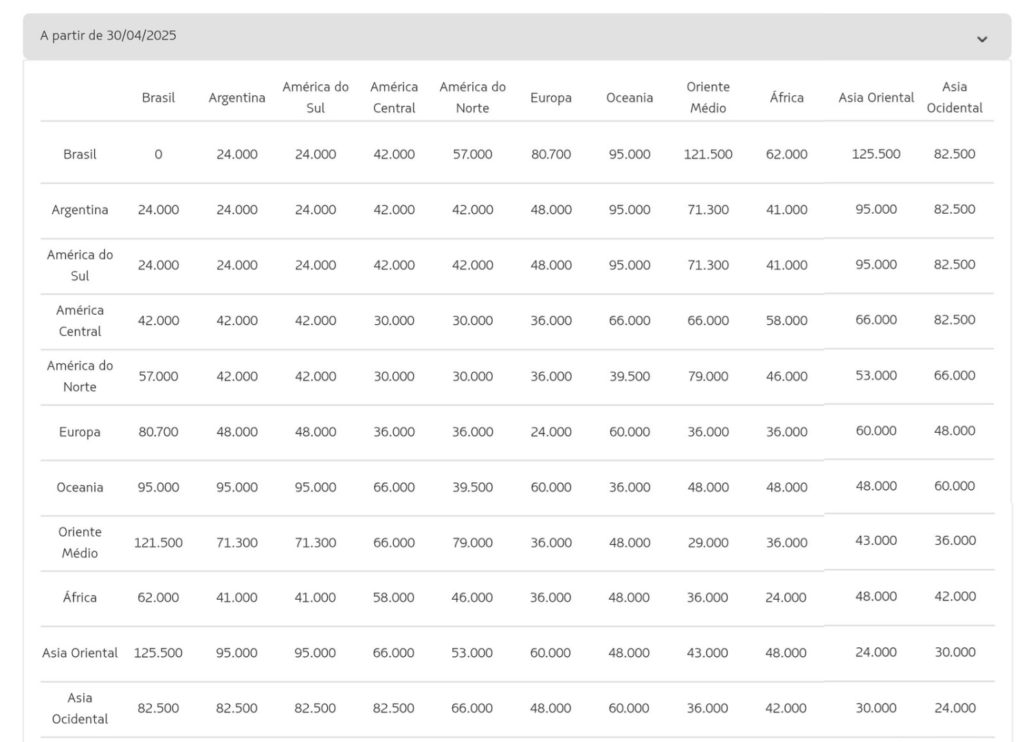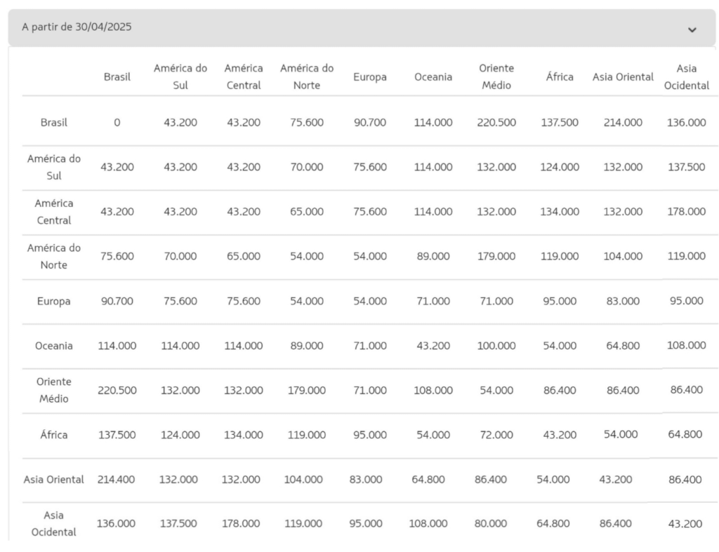 Atualizamos este post sobre como está funcionado a tabela fixa LATAM em 2025.